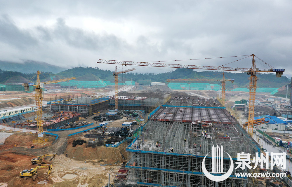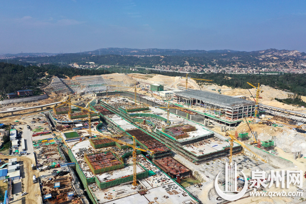新建福厦高铁新泉州东站正在紧张建设中(张九强 摄)