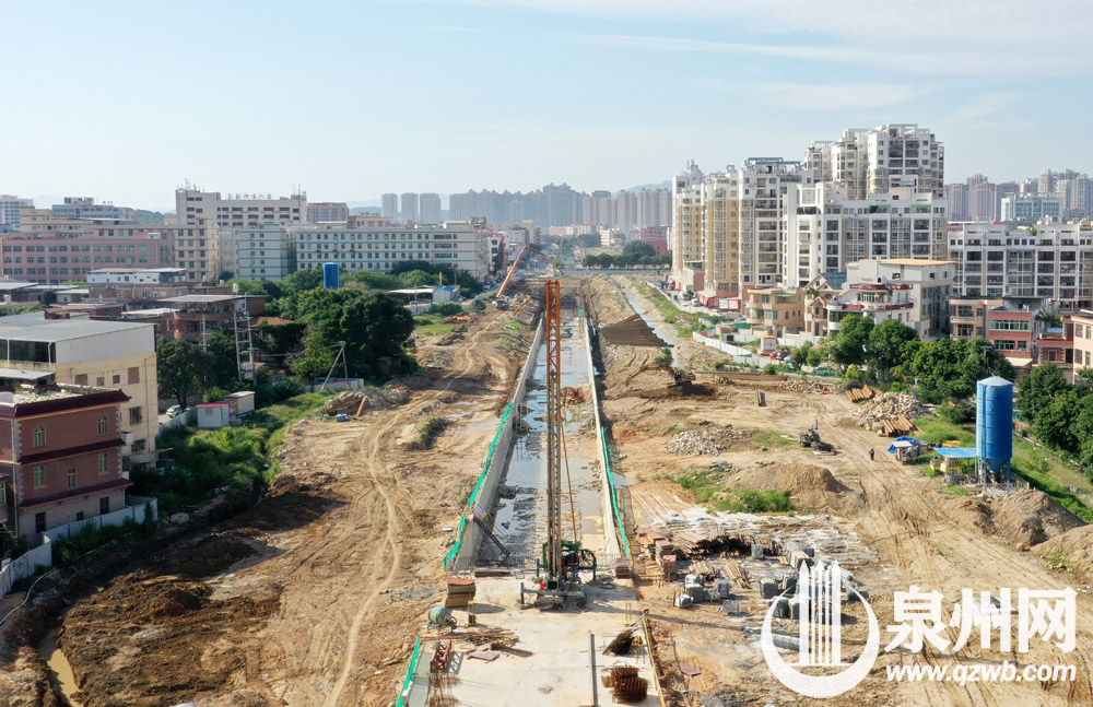 晋江市东部快速通道一期工程正在紧张建设中。(张九强 摄)