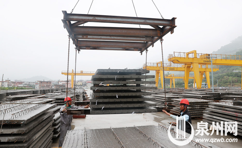 永春中闽建研绿色建筑工业化基地,工人们正在劳作。(张九强 摄)