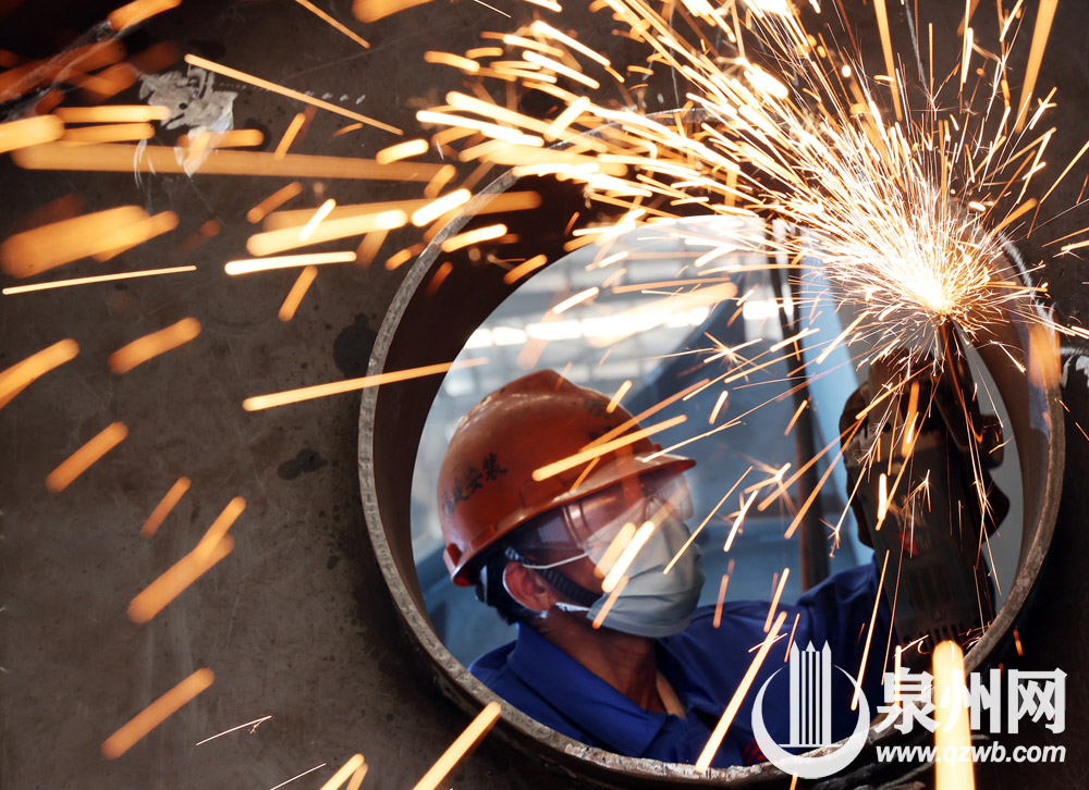 位于泉港区的福建省省安钢铁制品有限公司生产车间内,工人们正紧张忙碌着。(张九强 摄)