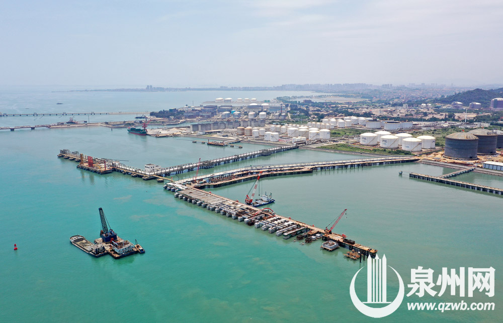位于泉港区的福建中燃湄洲湾能源项目——鲤鱼尾作业区4号泊位及仓储项目正在紧张建设中。(张九强 摄)