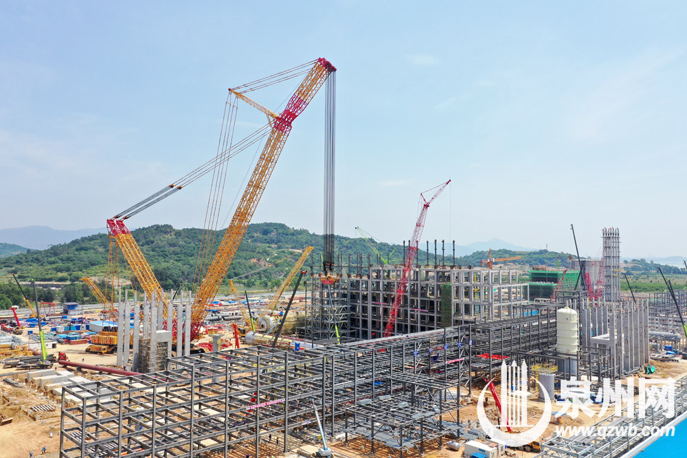 位于泉港区的泉州国亨化学有限公司100万吨/年丙脱氢(PDH)及90万吨/年聚丙烯(PP)项目正在紧张建设中。(张九强 摄)