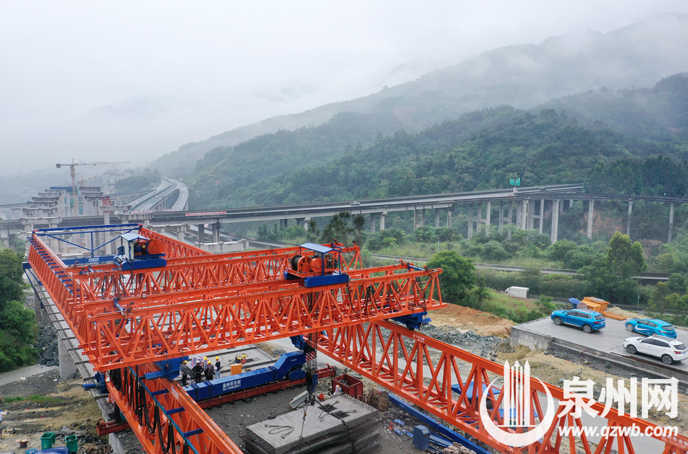 位于永春县境内的泉南国家高速公路永春互通至汤城枢纽段及沙厦国家高速公路德化至汤城枢纽段改扩建工程正在紧张建设中。(张九强 摄)