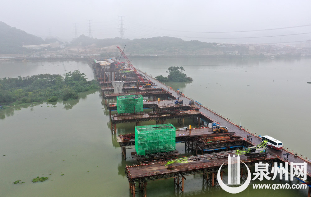 武荣大桥工程是我市连接北峰组团站前大道与南安江滨大道的重要跨江通道。(张九强 摄)