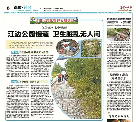 《江边公园慢道 卫生脏乱无人问》追踪