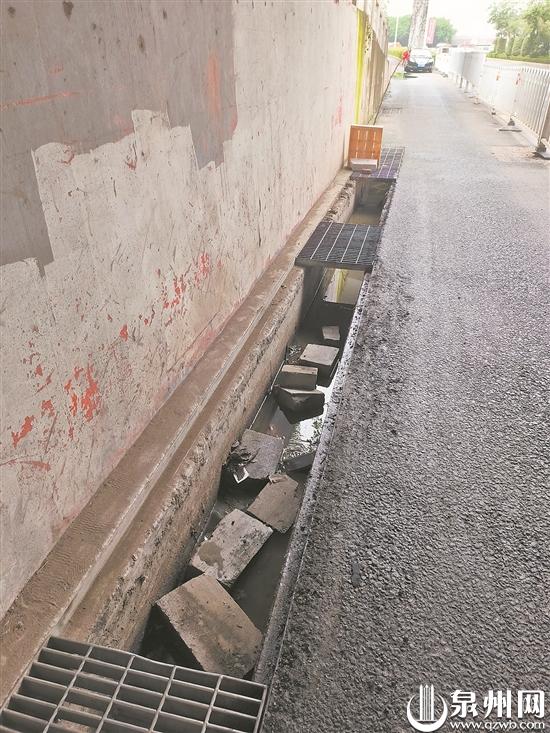 泉州网5月27日讯 (记者魏晓芳 文/图)近日,市民张女士致电泉州晚报社24小时热线96339反映,泉州大桥下江滨南路的非机动车道旁,有多个排水沟盖板缺失。最近持续降雨,路段时常有积水,市民骑车经过时难以看清路面,容易掉入水沟中。