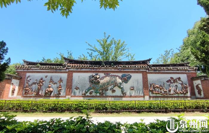 山门对面是照墙,高5米、宽19米。墙分三堵,正中是“麒麟壁”,上世纪七十年代被做好标记后,分拆移入开元寺复原。