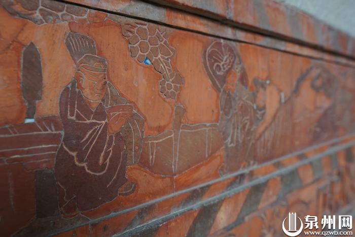 ▲洋楼的红砖壁上,有着许多精美的砖雕,有八仙过海、封神演义、三国演义等传说故事,还有各种瑞兽花草,惠安工匠们将砖雕形象刻画得分毫毕现,还精心嵌入了彩瓷,显得生动美观。