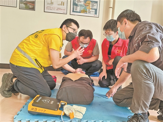 近日,泉州市“侨爱联心”自动体外除颤器公益项目暨侨界志愿者应急救护培训活动走进永春县东关镇。当天,参加培训的志愿者分成五个小组,在专业急救人员的讲解和示范下进行实操训练,以熟练掌握心肺复苏术、自动体外除颤器使用以及海姆立克氏急救法的要领。此外,市“侨爱联心”AED公益项目向东关镇捐赠一台自动体外除颤器,以更好地保障当地侨眷、居民及游客的生命安全。 (郭芳蓉 苏榆轴 李德来 摄)