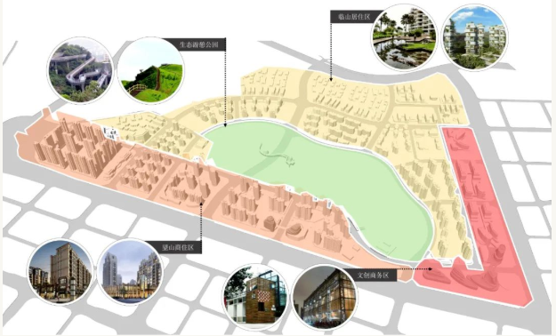 “留山塑心”即保育生态资源,优先保留以南埔山山地公园为重要特征的公共空间,打造以占区域面积四分之一的南埔山公园为中心的生活空间,建构以生态价值优先、文化美学价值与社会经济价值融合“三位一体”的综合型生态市民公园,营造城园相融、和谐人城格局。