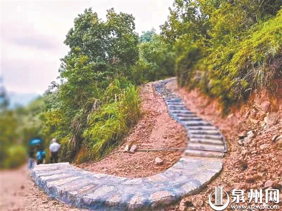 记者看到山上的条石长短一致,石头上还残留着一些白石灰。修栈道过程中,被石头锋利的边缘刮破手指对于郭汾水来说算是家常便饭。风里来雨里去,每一级阶梯都留下了他的脚印与汗水。工人做不好的地方,他就自己上去做,靠着这种“愚公”精神,短短两个月,一条步行栈道就完工了。“我虽常年在外打拼,但一直心系家乡。这次从深圳回到南安,刚好有一整段时间赋闲在家,就想着为村民做些有意义的事。”郭汾水说。