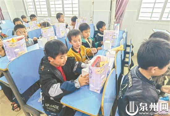 此外,鲤城区音乐家协会、泉州市新华小学、晋江玉堂街觅爱蛋糕店等爱心单位也给孩子们捐助了文具、糖果等儿童节礼物,孩子们吃完蛋糕后,志愿者们一一分发。