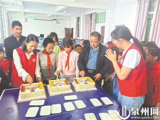 “有些学生还是第一次吃蛋糕,特别开心,很感谢大家不远千里来给孩子们过节。”白玉小学校长黄世忠介绍,白玉小学位于祥华乡海拔1500多米的佛耳山上,校舍所处位置海拔高达1000多米,是泉州海拔最高的小学。由于海拔较高,学校所处的祥华乡白云村常常云雾缭绕,虽已入夏,不少孩子还穿着厚外套。目前在校生大多是留守儿童和家庭条件困难的孩子,吃蛋糕对孩子们来说都是“奢侈”的愿望。