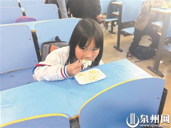 2013年,东南早报·东南公益联合泉州市委文明办等单位启动“爱心午餐”项目以来,白玉小学的一些留守儿童开始吃上了有菜、有肉、有汤的营养午餐。当天,东南公益志愿者、白玉小学师生代表等共同切下由泉州市伍氏特香包有限公司捐赠的“爱心午餐”纪念蛋糕。孩子们大口吃着香甜美味的蛋糕,脸上洋溢着幸福。不少孩子吃完后还问志愿者:“蛋糕还有吗?还可以再吃一块吗?”……