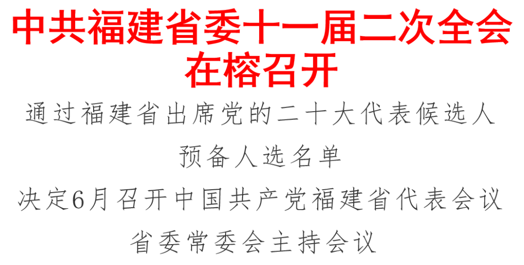 6月2日,中国共产党福建省第十一届委员会第二次全体会议在福州召开。省委委员75人、省委候补委员16人出席会议。