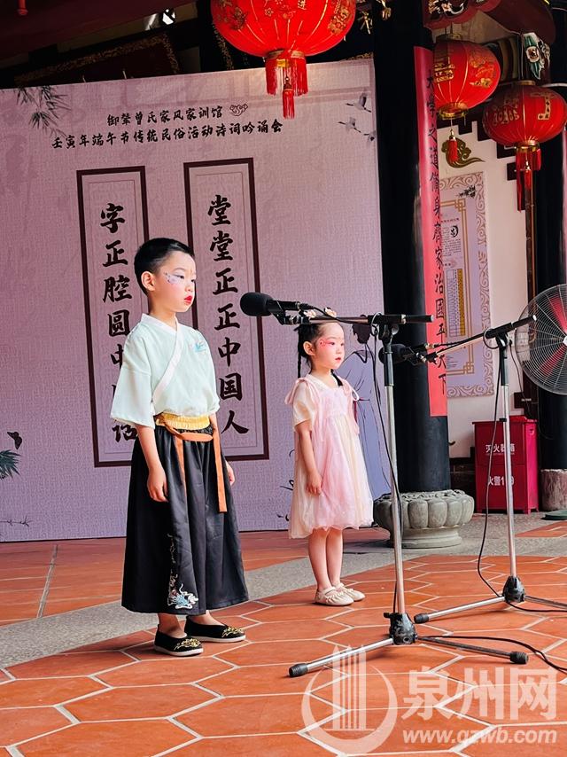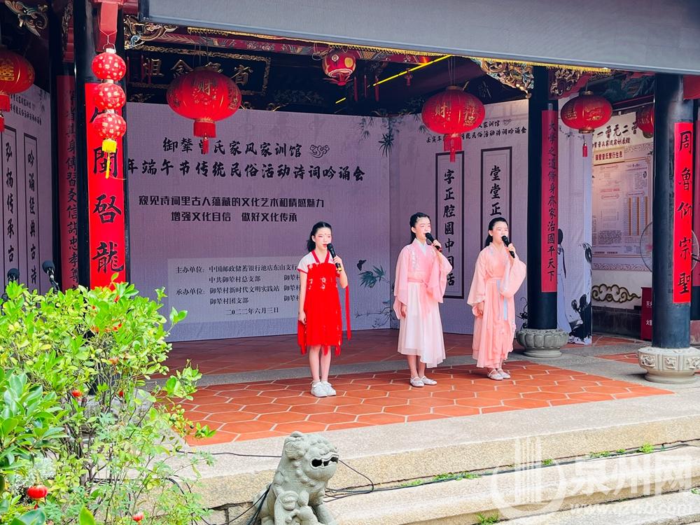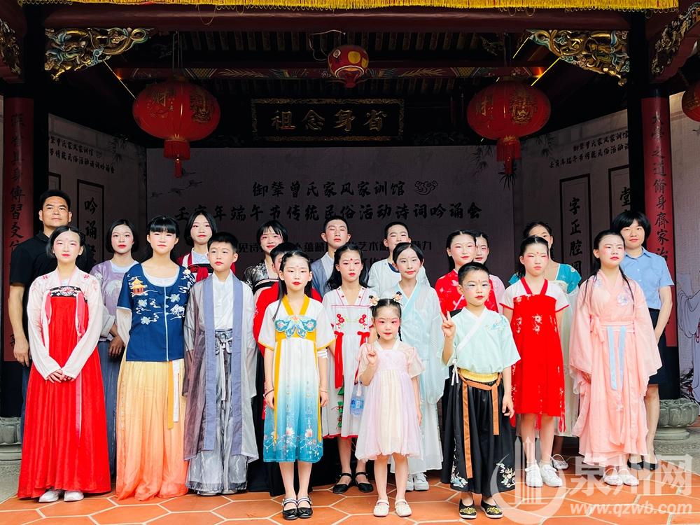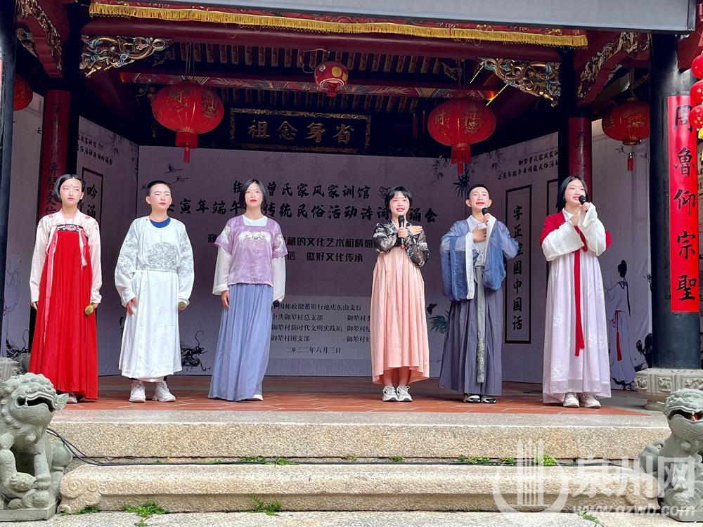 泉州网6月3日讯(记者许雅玲 通讯员曾猛博 )今天,一场端午主题古诗词吟诵会在晋江池店镇御辇村曾氏家风家训馆举行。穿越千年的古诗词成为吟诵会的主角,20多位参与者身着汉服以吟诵的方式向经典致敬。现场还举行了包粽子等端午民俗体验活动,包好的粽子由志愿者送给31户低保老人。