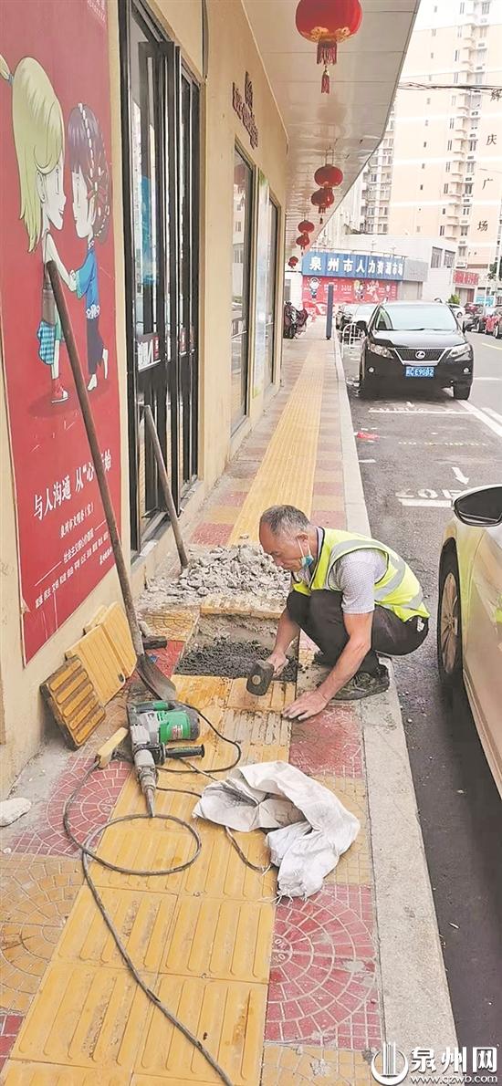接到“吹哨”后,相关部门及时修复破损的人行道。