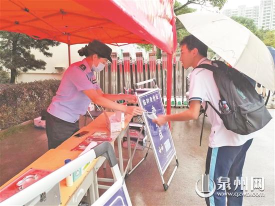 泉州网6月9日讯 (记者陈祥木 苏玮杰 通讯员陈家缘 文/图)“出门急就给忘了,谢谢警花姐姐的口罩!”6月7日下午,在安溪六中考点,部分考生匆忙奔赴考场,结果忘记佩戴口罩。这时在考点附近的“高考爱心服务站”驻点执勤的安溪县公安局城厢派出所民警及时向他们递上了爱心口罩,看着他们顺利进入考场。同时,该服务站还准备了2B铅笔、正气水、常用药品、矿泉水、纸巾等防疫、防暑用品和各种文具,以备考生的不时之需。