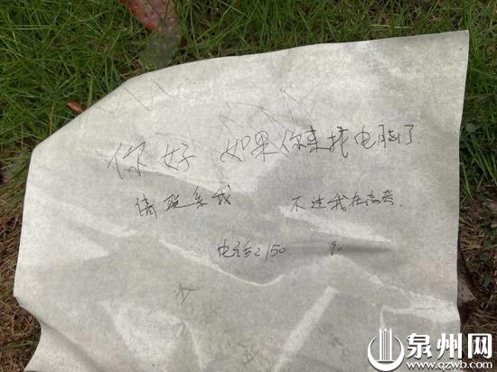 此时,现场的出警民警也传来好消息,在遗失地点附近的小花圃找到字条,并在小区保安室找到了笔记本电脑。