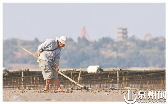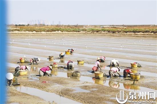 泉州渔民在滩涂上捕捞蛤类(邱建峰/摄)
