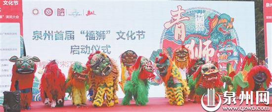 泉州市首届“福狮”文化节启动仪式暨鲤城区“宋江阵·青狮祈福”演武大会活动昨日在泉州府文庙广场举行。“福狮”文化节将持续至7月,集中宣传展示泉州非遗资源。 (王柏峰 摄)