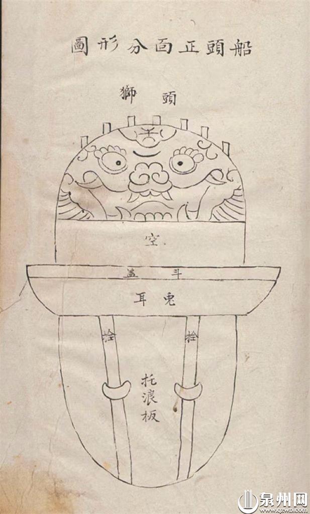 除了“头狮”这一称谓,福船上还有一处构造与“狮”有关,即福船船头上有一阁楼,前面甲板称“头狮坪”。由于船头雕刻神兽之后,可能遮挡住行船视线,因此会造一座阁楼作“瞭望台”用,“头狮坪”便是阁楼前方空地的称谓。