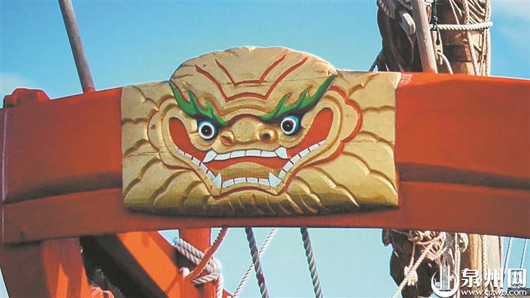 虽然古籍中没有明确记载福船船头装饰虎或狮这两种兽首的区别,但民间有一种说法,战船的船头多刻画虎头,因虎是中国传统动物,而商船的船头多刻画狮头,这或与狮子是“外来物种”有关,古代泉州多与阿拉伯、波斯、锡兰等国贸易往来,而狮子的形象在这些国度的商贾们眼中或许更为亲切。