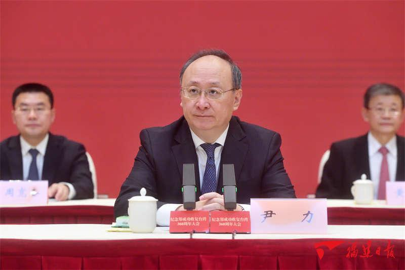 尹力表示,福建是郑成功的故乡,也是许多台湾同胞的祖籍地和居住地。闽台同胞血脉相连、命运与共,坚决反对“台独”是我们共同责任,积极促进两岸融合发展是我们共同心愿。近年来,闽台交流融合虽遇到暂时困难,但从未间断。我们要赓续爱国主义传统,弘扬郑成功爱国主义精神,不断增进两岸同胞骨肉情谊,为推进祖国统一大业、实现中华民族伟大复兴作出更大贡献。福建将坚决贯彻落实中央对台工作大政方针,坚持以通促融、以惠促融、以情促融,在探索两岸融合发展新路上迈出更大步伐,努力打造台胞台企登陆的第一家园。