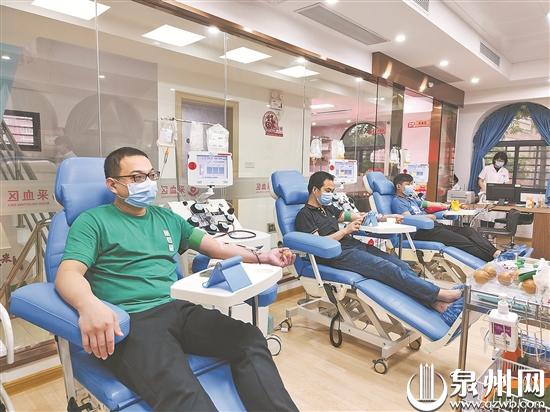 14日下午4点多,多名献血志愿者冒雨来到泉州中心血站献血屋献血小板。