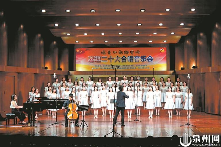 这场音乐会由市文联、共青团泉州市委、泉州市合唱协会主办。整场演出由《飞云之下》拉开序幕,《遇见》《我爱你中国》《星辰大海》《你是人间的四月天》《百年守望》等十余首歌曲接连亮相。(陈智勇 刘群发 摄)
