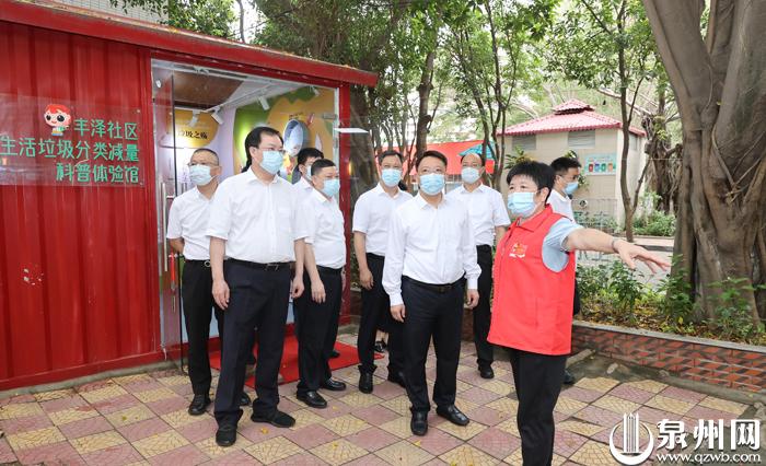 21日,省委常委、市委书记刘建洋到市级垃圾分类示范小区丰泽新村调研。 (陈起拓 摄)
