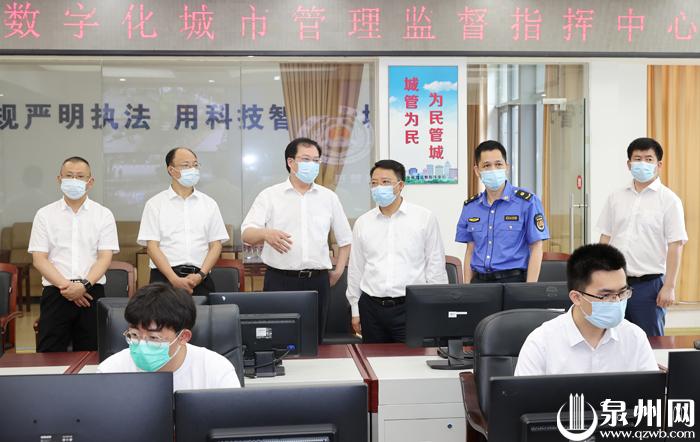 21日,省委常委、市委书记刘建洋调研泉州市智慧城管物联通管理平台。(陈起拓 摄)