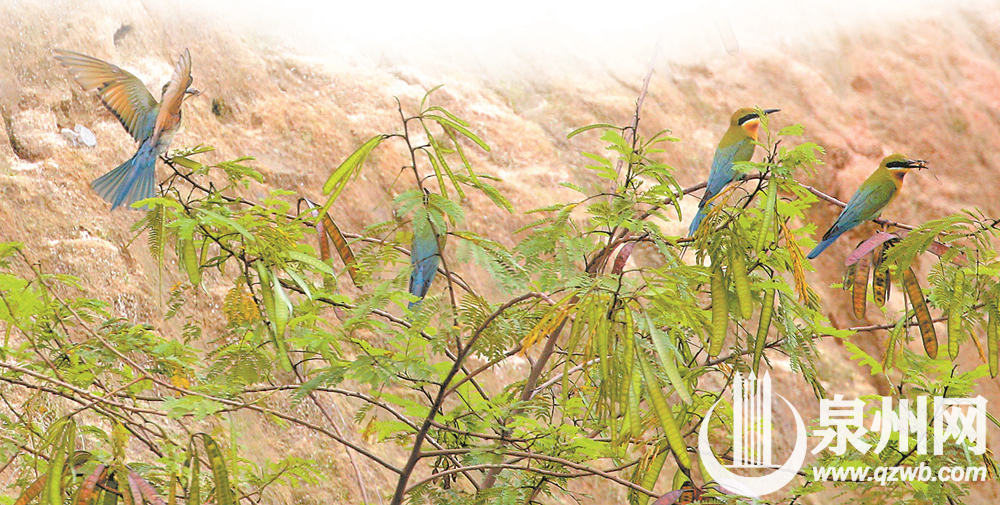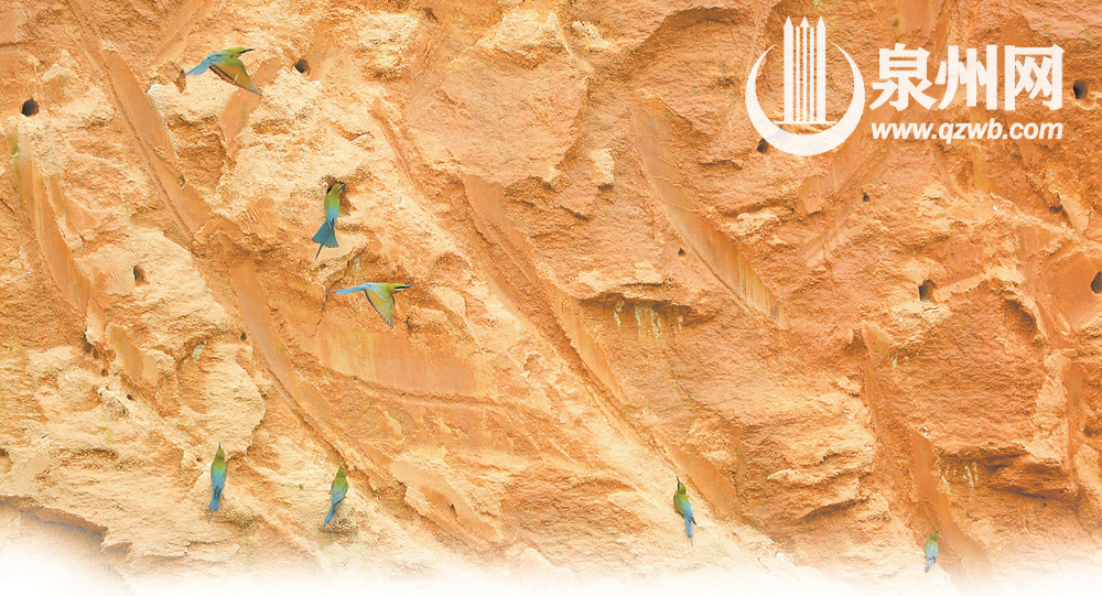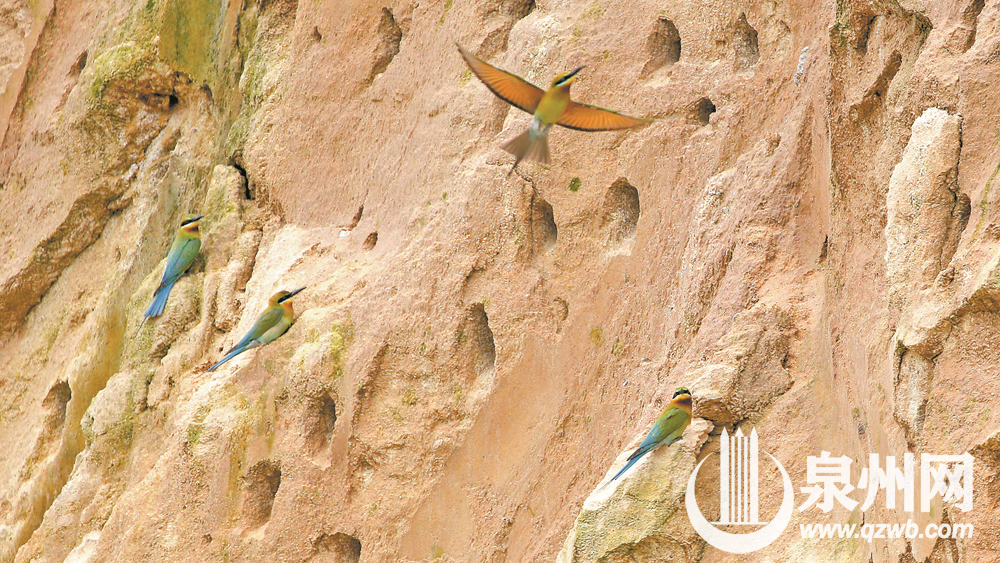 4月造访石狮,5月巢穴产卵,6月孵化育雏……眼下,位于石狮峡谷旅游路的栗喉蜂虎正进入育雏期,新一代栗喉蜂虎将于7月份飞出巢穴。根据泉州市观鸟学会此前观测,在此地安家的栗喉蜂虎已超过100只,按照每对栗喉蜂虎产卵5枚计算,待到7月底幼鸟出巢,栗喉蜂虎总量有望超过300只。