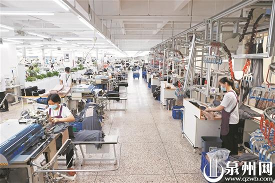 1—5月,全市规模以上工业增加值同比增长4.4%,其中纺织服装业增长9.6%。图为日前在位于泉州开发区的九牧王西裤智能化生产车间内,自动化西裤流水线正高效有序运转。(陈晓东 摄)