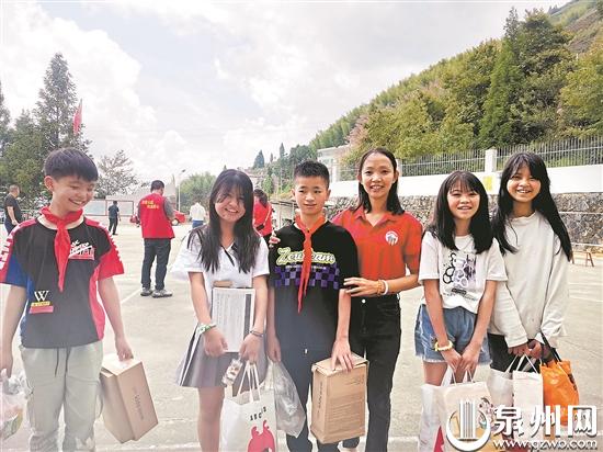 6月25日,东南公益志愿者和爱心人士带着爱心物资再次走进白玉小学看望孩子们。东南公益爱心单位泉州珊珊饰品有限公司总经理林珊珊当天还与读小学的女儿黄钰淇和外甥刘毅霖一起,为每位学生都准备了一份装有零食、面包和饮料的礼包。林珊珊说,这是她第一次走进山村小学,看到孩子们沿着崎岖的山路上学苦读非常感动。