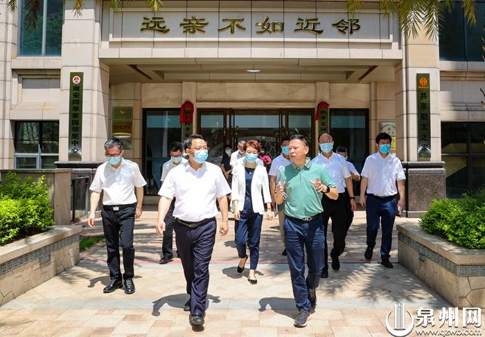 省委常委、市委书记刘建洋在南安市柳城街道四季家园小区调研党建引领网格化管理工作。(陈英杰 摄)