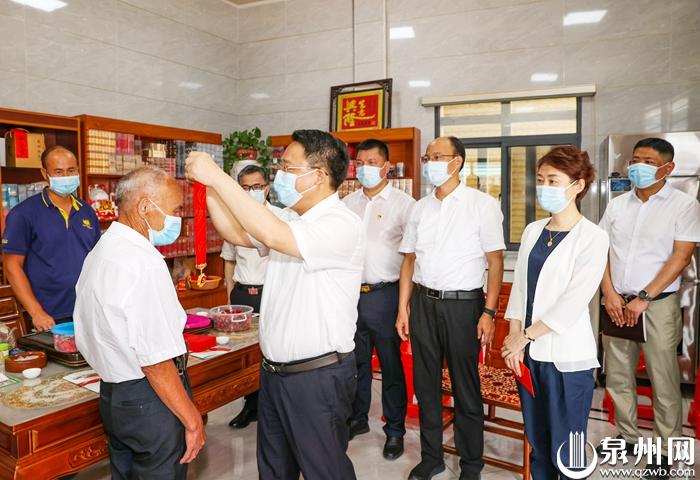 调研中,刘建洋还来到老党员郑忠清家中,倾听老人讲述矢志不渝跟党走的经历,为他佩戴“光荣在党50年”纪念章;走访生活困难党员吴金锭,与他拉家常、聊近况、问需求,鼓励他保重身体、乐观生活。刘建洋指出,广大老党员不仅是党的事业的亲历者、见证者,更是参与者、奉献者,为泉州改革发展作出了突出贡献。当前全市上下正大力传承弘扬“晋江经验”,开展“提高效率、提升效能、提增效益”行动,深入实施“强产业、兴城市”双轮驱动,希望老党员做好传帮带,继续发挥先锋模范作用。全市各级党组织和广大党员,要不忘初心、牢记使命,继续发扬伟大建党精神,学习老党员的崇高品格,将这笔宝贵的精神财富转化为担当实干的发展动力。要始终带着感情带着责任,为老党员办实事、做好事、解难事,安排好照顾好生活困难党员的衣食住行,真正让他们乐享发展成果、感受幸福生活。