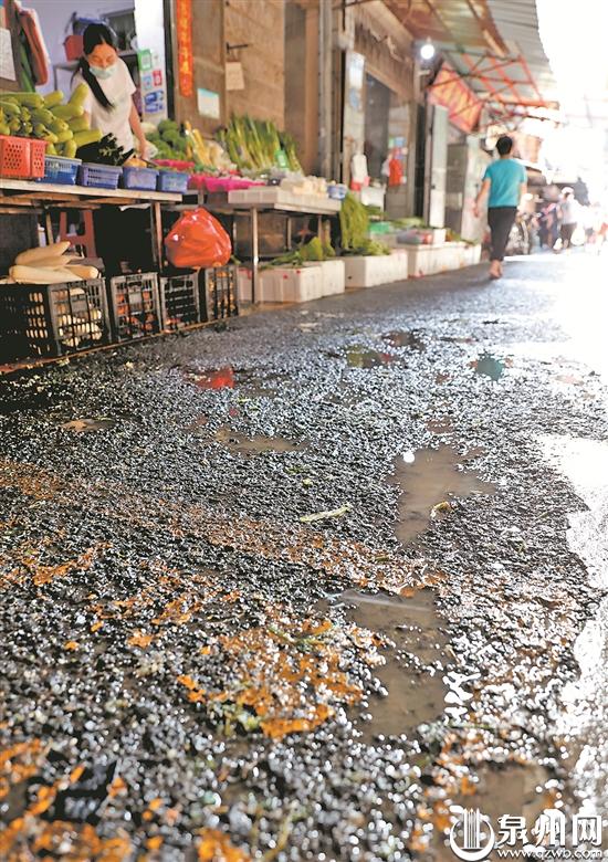 泉州网7月1日讯(记者 廖培煌 林劲峰 文/图)在市场周边见缝插针摆摊设点,影响群众通行;市场配套施划了停车位,一些车辆随意停放,秩序混乱;货品随意堆积,有的散发恶臭,引得蚊蝇纷飞……