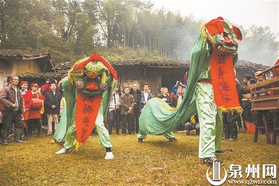 在福建传统节日活动中,舞狮是一项重要内容,含有祈祷平安、贺年贺节的喜庆之意。福建舞狮分文狮和武狮。文狮重形意神态,舞法细腻。武狮重威武技巧,以泉州、漳州、厦门的狮阵,连城客家青狮为代表。
