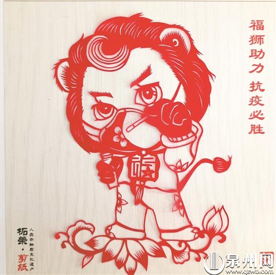 柘荣剪纸《抗疫福狮》(柘荣县委宣传部 供图)