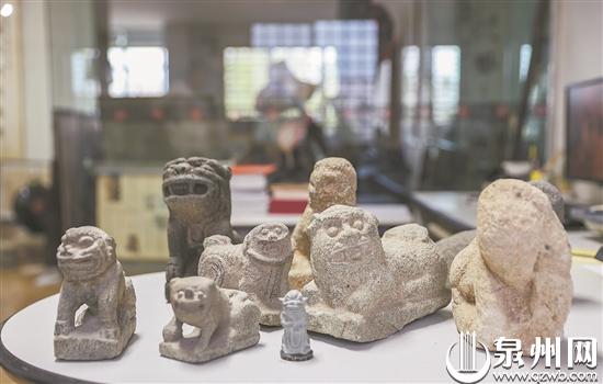 泉州惠安石雕大师蒋惠民收藏的石狮子(陈英杰 摄)