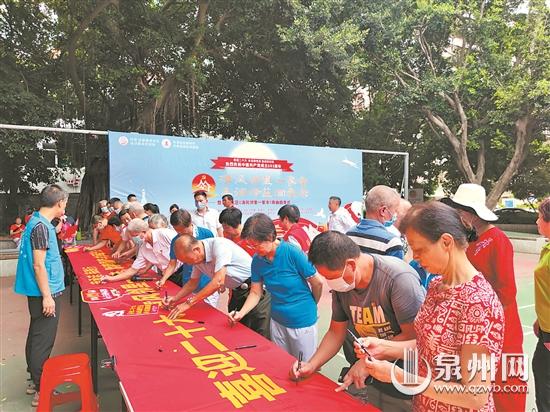 在丰泽社区《清风邻里一家亲》歌曲首发式现场,参加活动的党员干部及家属签下倡廉助廉承诺。
