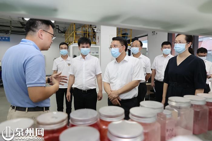7月4日,省委常委、泉州市委书记刘建洋到晋江市创新创业创造园约克新材料科技有限公司调研。 (陈起拓 摄)