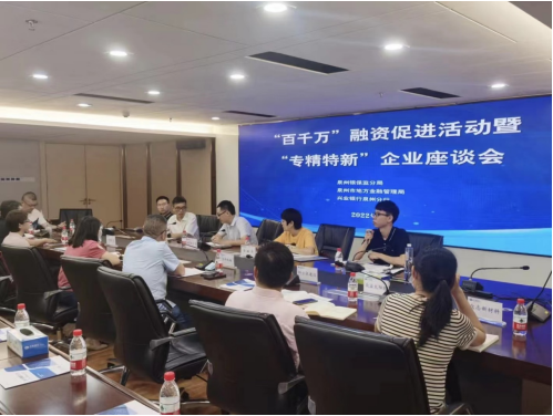本次座谈会旨在进一步推进泉州“专精特新”中小企业金融服务工作,为“专精特新”中小企业畅通融资渠道。会上,泉州银保监分局普惠科负责人都崴崴对国家、省、市扶持“专精特新”中小企业发展的相关政策进行了宣介,兴业银行泉州分行中小企业部副总经理陈芗铭介绍了该行服务专精特新企业的情况,重点推介了兴业银行“科技贷”、“投联贷”等科创金融产品,从业务优势、办理流程等方面进行详细解读,同时就该行“技术流”创新审批模式进行讲解。