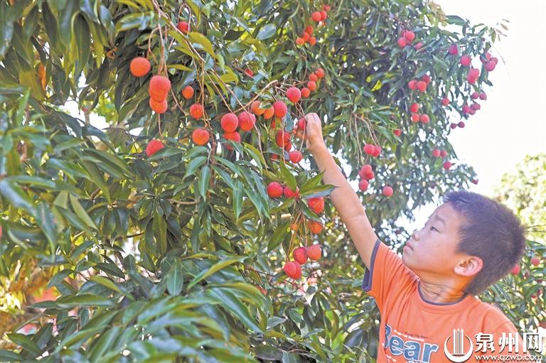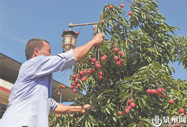 昨日,永春岵山,村民们忙着采摘荔枝。今年漫长雨季的过去后,泉州迎来了夏日艳阳,也迎来了荔枝的成熟期。在刚刚过去的周末,已有不少游客自驾到岵山,为“荔”而来,未来10天左右都是荔枝的尝鲜季。(记者潘登 摄影报道)