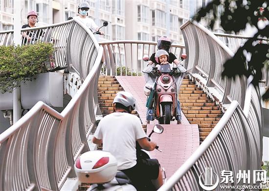 市民张先生建议,可将现有的人行梯全部改成便于电动车行走的层进式斜坡作为电动车通道,再加装减速带,电动车通道边建两三人宽的小型人行楼梯道,实现人车分离通行。