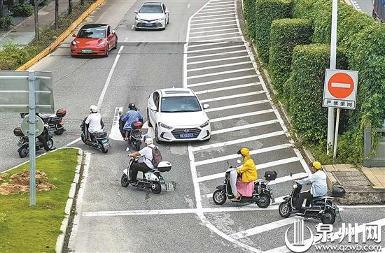 记者还发现,从非机动车道隧道往丰泽街方向的出口处,一些电动车为了不推车上天桥又能顺利进入非机动车隧道,从坪山路丰泽街路口的机动车掉头区横穿,违法逆行在机动车道上,存在严重的交通安全隐患,在此掉头的小车只能小心翼翼地避让,险象环生。