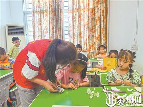 “这次支教正好可以提升一下自己的教育教学能力,也满足自己做公益的想法。”施培娜是龙门镇后坂村人,目前是福建师范大学协和学院学前教育专业大一学生。她表示自己虽然没支教过,但每学期都会去幼儿园见习一周,因此算有一些教学经验。她之前就一直有做公益的想法,便加入了安溪义工群。前几周看到金谷镇在招聘支教老师,就报名参加了,自己这个专业所学的内容较为广泛,如画画、音乐……都可以派上用场。对于这个月的教学,她计划在让学生尽早完成暑假作业的同时,教他们画画、音乐、折纸等课程。