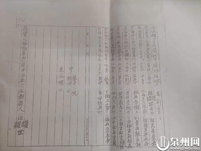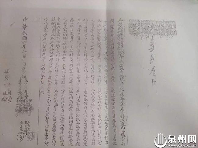 据载,明嘉靖年间,泉州金氏不少人外迁到永春、安海、陈埭等地,有一支脉在永春定居,经营木材生意,后有一部分回到泉州五堡,一部分到永泰。明万历年间,金氏九世祖在大寺后置地建宅,金奕鹏保存的一份契约副本写明,该民厝是“一座伍落双面护厝,土名大寺后”,落款时间“万历二十八年七月”。