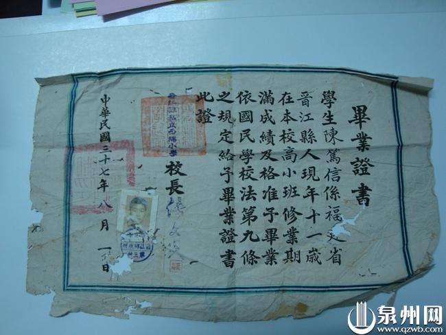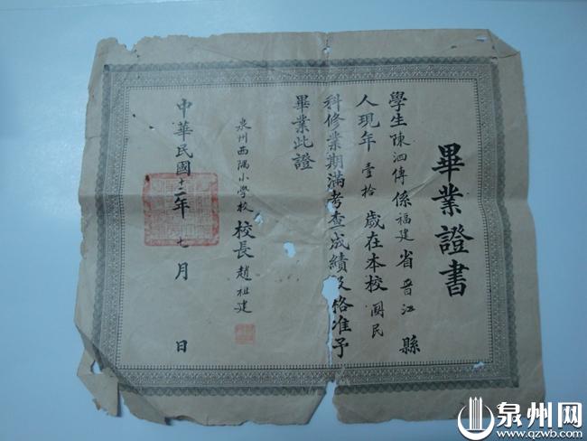 西隅学堂毕业证书(陈笃恒/供图)